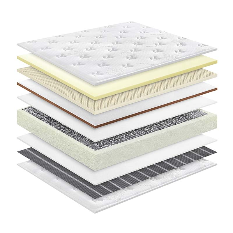 Ón gciseal dromchla go dtí an struchtúr inmheánach, comhcheanglaíonn an tocht seo laitéis nádúrtha le fabraic jute atreisiú chun breathability cothrom agus tacaíocht iontaofa a bhaint amach. Freagraíonn laitéis nádúrtha do bhrú an chomhlachta gan dul faoi uisce iomarcach, agus cuireann fabraic siúit neart struchtúrach leis, ag cuidiú leis an tocht a chruth a choinneáil fiú faoi úsáid go minic. Déanann an tógáil seo go háirithe oiriúnach d'óstáin, árasáin seirbhísithe, agus tionscadail chónaithe atá dírithe ar cháilíocht.